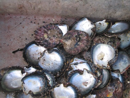 Rejects (pearlless oysters) are recycled as "seeds"