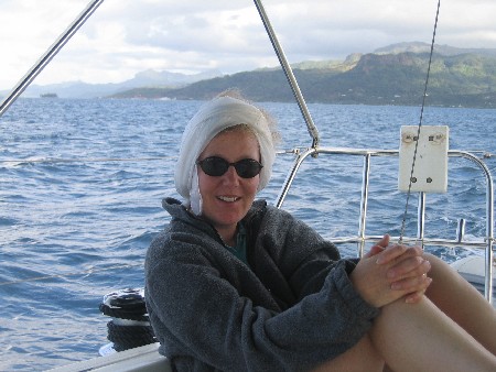 CMB doing her Grace Kelly impression with Raiatea in background
