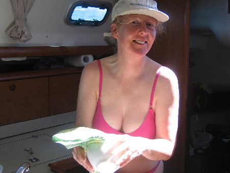 Our last bit of clean-up before driving the boat (for the last time) back around the lagoon